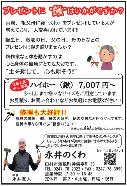 創業より100年余り、4代続く「有限会社永井のくわ」です。