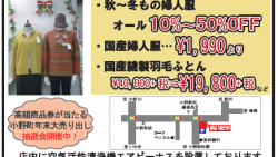 2020年度 「美」と「健康」を「提案」するショップ ㈲あいたや チラシ広告のpdfはこちら 「美」と「健康」を「提案」する当店は、“年に一度の大創業祭”を開催し、メーカー協賛で婦人服と羽毛ふとんを大特価で販売します。また、店内に除菌・脱臭・集塵・消煙効果がある空気活性清浄機「エアーヴィーナス... 2020.11.08 2020年度